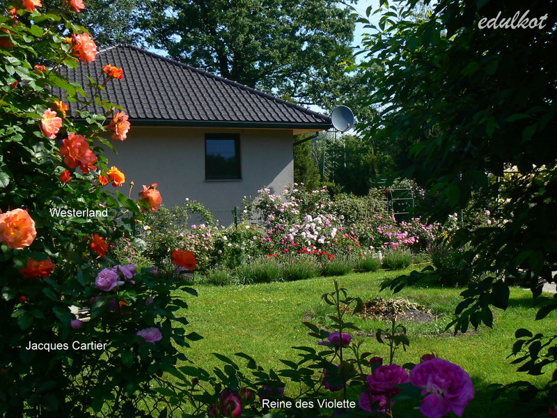 Znalazłam grupowe zdjęcie i sąsiadkami i widokiem na inną różaną rabatę.