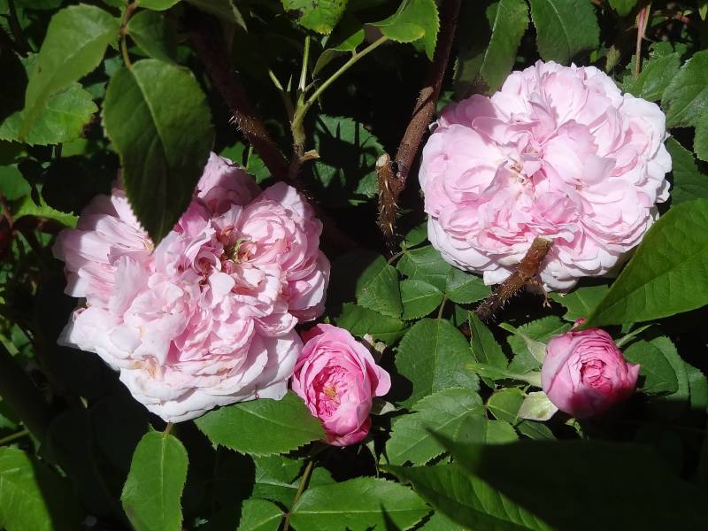 Mój jaques Cartier w sezonie 2023. Mam mało zdjęć, bo obrosły go inne krzewy i kwitł tak nieporadnie. Przyszły sezon może będzie lepszy, bo spacyfikowałam sąsiadów.