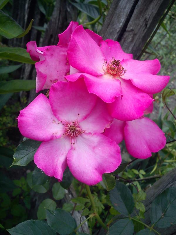 Strasznie trudno ją okiełznać. Pędy są jeżynopodobne, rzadko grubsze niż palec, bardzo giętkie i, jak wspomniałam, non stop rosną, wszerz i wzdłuż. Mają kolce zrywające skalp i szatę wierzchnią. Idealna podpora, jak mi się zdaje, powinna mieć kształt wachlarza. Moja róża rośnie przy płotku, tyle dobrego, że łatwo się ją owija wokół listew.