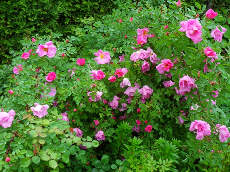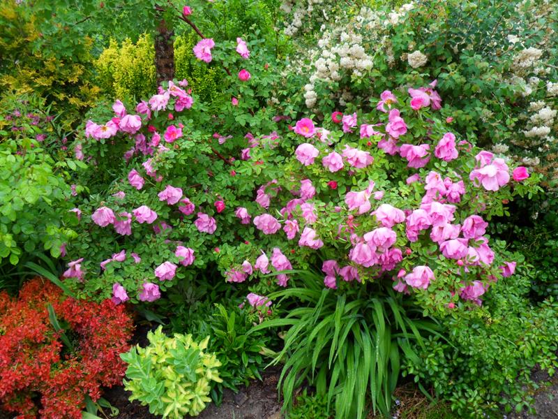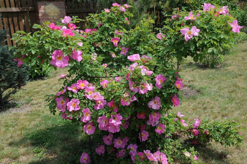 Róża krzewiasta, docelowo osiąga rozmiary 2,50 x 2m.