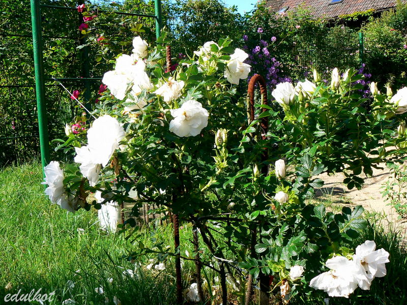 Do tych plusów muszę dodać jeden, ale wielki minus, wystarczy trochę deszczu, a pączki robią się brązowawe, do tego nie czyści się i jej uschnięte rude płatki wiszą potem na końcach pędów, trzeba je usuwać ręcznie, a nie jest to takie proste przy jej wielkości i obecności kolców wszędzie.