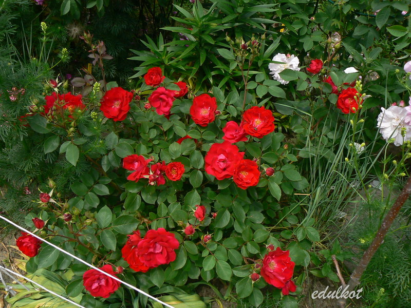 Róża malutka, a może to ja ją tak nisko tnę, bardzo chorowita, ale usiłuje nadrobić wrażenie pięknymi kwiatkami.