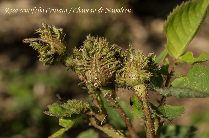 "Centifolia Cristata", "Châpeau de Napoléon", "Crested Provence", "Cristata", "R. centifolia muscosa 'cristata'"