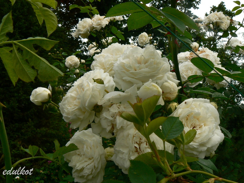 Kwiaty pełne o kielichowym kształcie - zdumiewająco idealnym jak na różę pnącą. Kolor kwiatów biały, w początkach kwitnienia z różowym połyskiem w centrum. Lekki zapach.