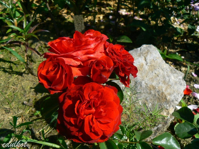Kwiaty: średnie, półpełne czerwone, kwitnie rzutami przez cały sezon,