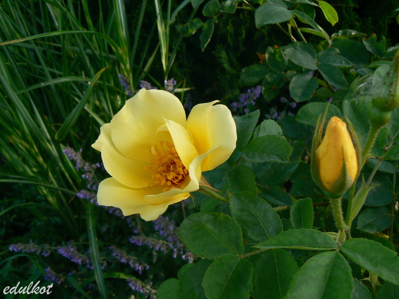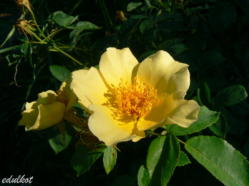Jest to dla mnie róża symboliczna, posadzona na grobie Goldiego, który odszedł tragicznie. Na dodatek to pierwsza świadomie zakupiona żółta róża, choć ciągle mówiłam że ona jest złota, no i pustaczek, czyli to od niej zaczął się inny wymiar mojego spojrzenia na róże. Pokochałam Spinosissimy.