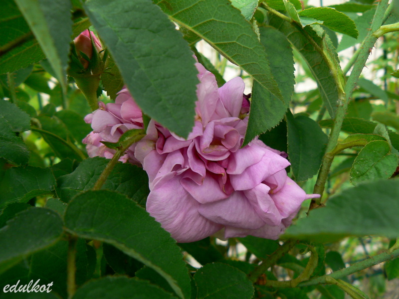 Róża Centifolia, Damascena, Pochodzenie: nieznane, jest podawane że została w Malamaison Cesarzowej Józefiny, ale również jakoby pochodziła z Holandii, Kwiaty: różowo fiołkowe, duże ok. 6-10 cm, pełne, ćwierćrozetowe, kwitnie raz, Zapach: mocny, Wielkość: wysokość 0,9-1,2 m, szerokość 0,9 m, Mrozoodporność: strefa 4b,