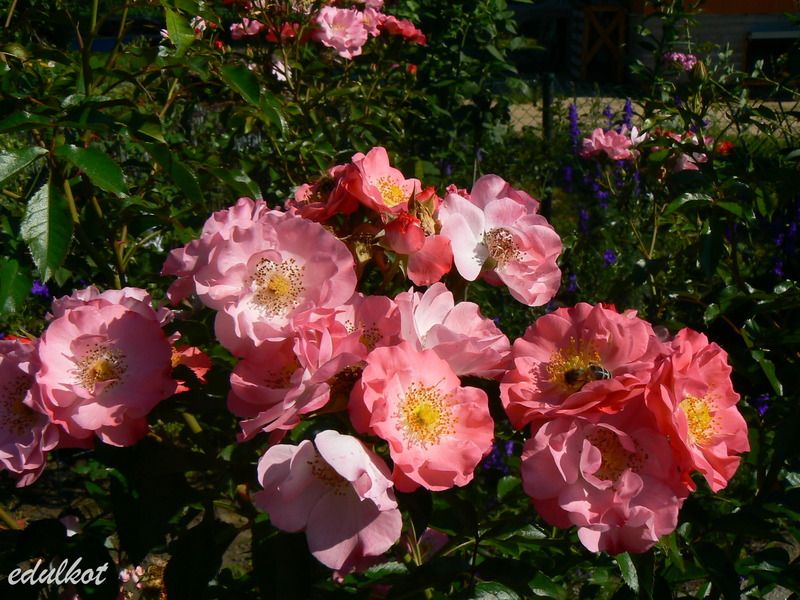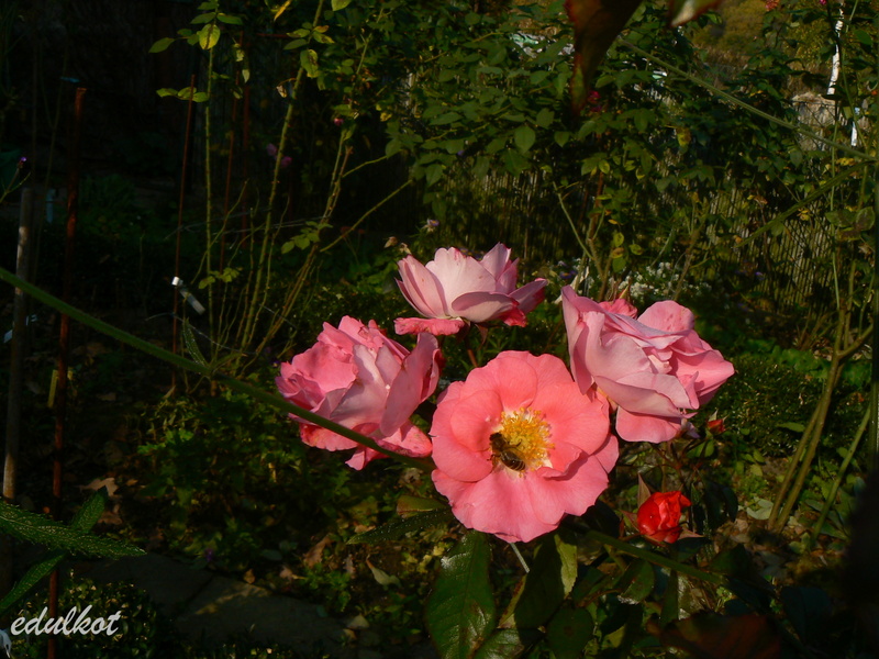 Zasiedziała róża, która każdego roku kwitnie bezproblemowo, nic jej nie przeszkadza, ani deszcz, ani słońce ani jesienne przymrozki. Uwielbiana przez owady bo śmiało pokazuje swoje pręciki.