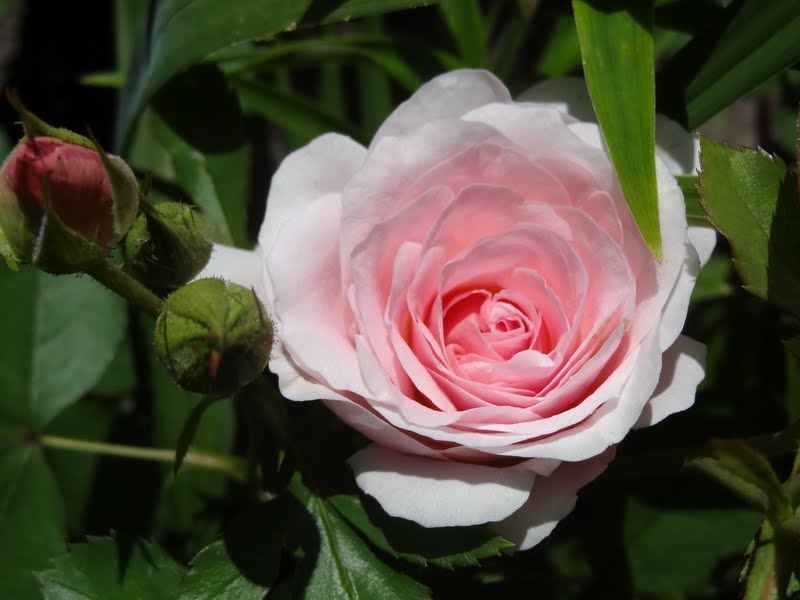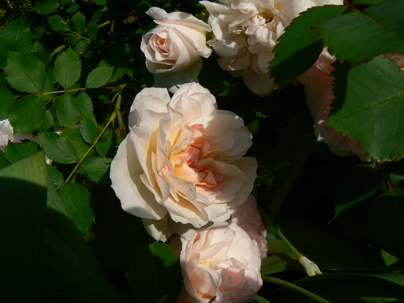 Kwiaty: blado różowe z ciemniejszym perłowo różowym centrum i kremowo białymi krawędziami, bardziej różowe przy zimnej pogodzie, w pełnym rozkwicie jasno różowe, średnie ok. 5-6 cm, pełne (40 płatków), długo utrzymują się na krzewie, kwitnie bukiecikami cały sezon, podobno ma tendencję do zmienności kolorystycznej zależnej od warunków środowiskowych,