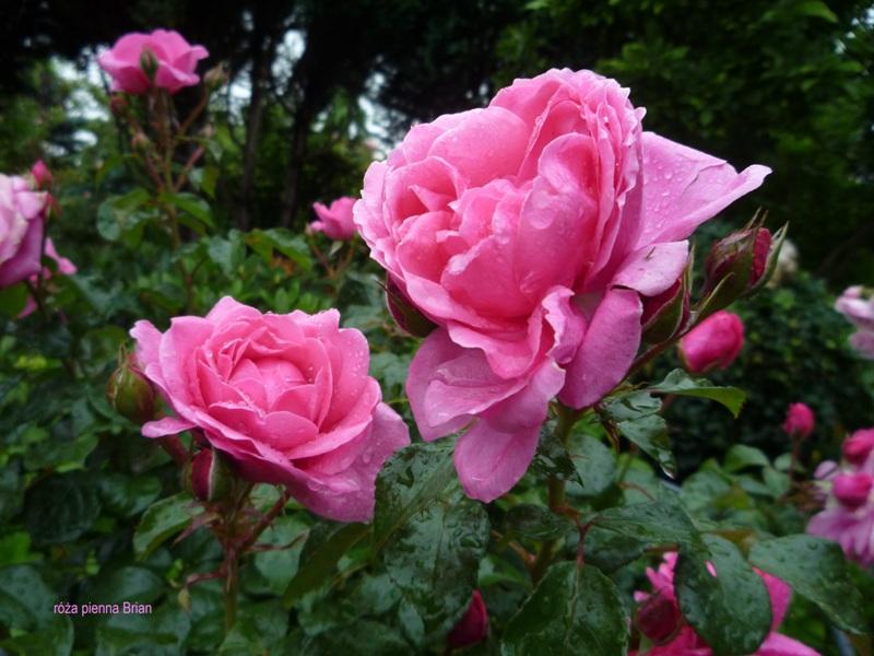 W oddali widać "doktorka" rośnie w lekkim cieniu a na pierwszej linii przy ścieżce rośnie róża pienna Brian.