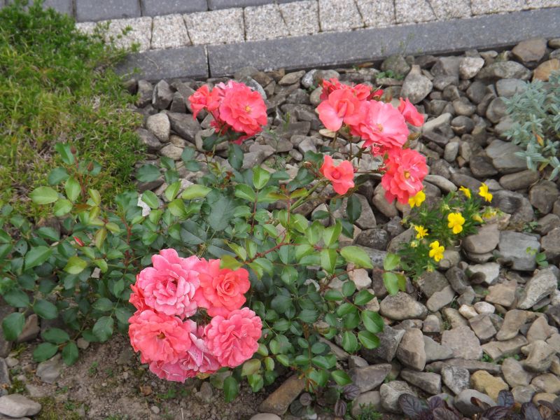 Kwiaty intensywno różowo-łososiowe, półpełne, średnicy 4cm, zebrane na szczytach łukowato wygiętych pędów w baldaszkach, powtarza kwitnienie do późnej jesieni.