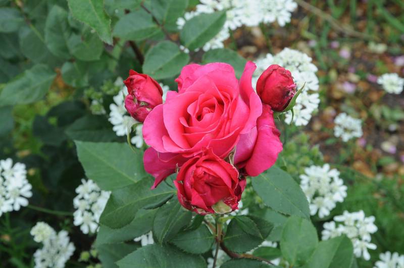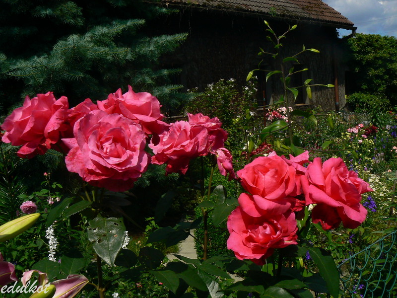 U mnie to raczej wąski ale wysoki krzak, zawsze kwitnie gdzieś na wysokościach. Jesienią dopada ją plamistość, mączniak, zawsze się śmieję, że jak ona zaczyna rozkwitać to na pewno będą deszcze, a ona tak brzydko wtedy wygląda.