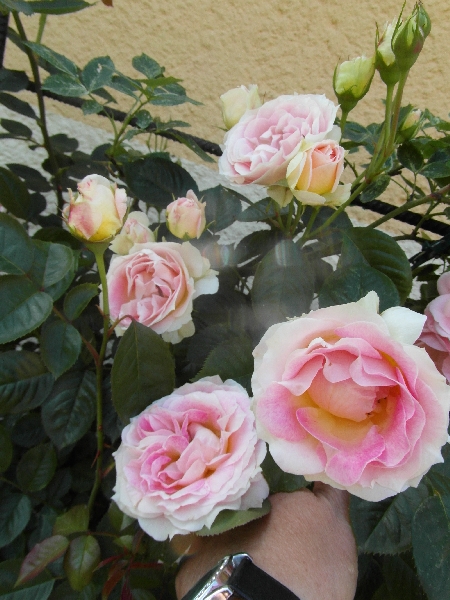 Zachwyciły mnie kwiaty - duże, pełne, pofalowane płatki. Z zewnątrz jaśniejsze w środku ciemno-różowe. Podobne do Eden Rose.