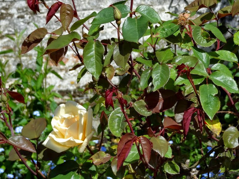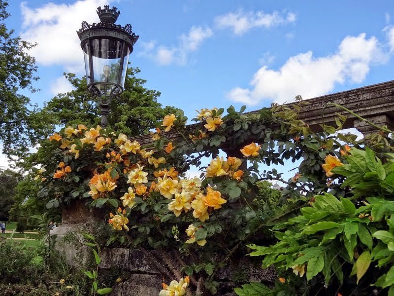 Wcześniej zwiedzając pałac na jego ścianach i okalającym murze także widzieliśmy piękne, stare krzewy różane.