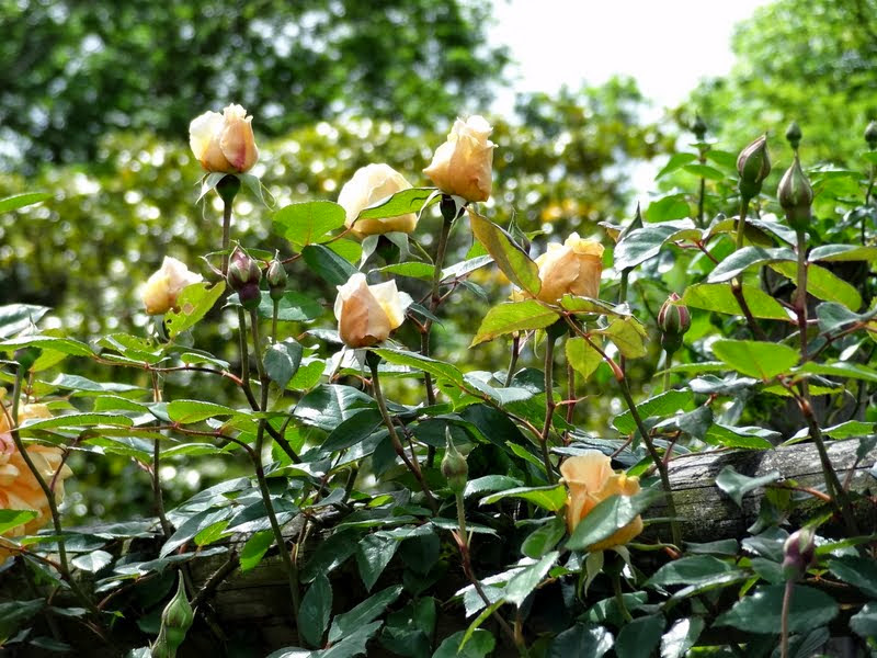 i po drugiej stronie rabaty widzimy 'Abricotée' (róża herbatnia, Dupuis, 1843)