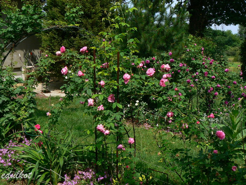 Ma już swoje lata i z każdym rokiem jest coraz wyższa. Ostatnio jej długie pędy rozpięłam na boki,a ona środkiem wypuściła kolejne długasy. Jeszcze mi nigdy nie powtórzyła.