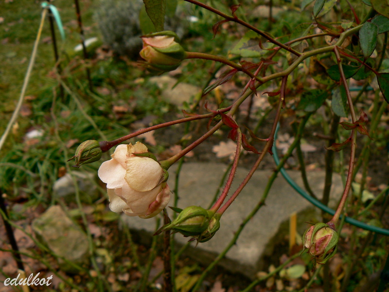 Moja na własnych korzeniach właściwie nigdy zbytnio nie ucierpiała, zawsze cięta bardzo nisko i dlatego później zakwita, ale kwitnie do samej zimy.