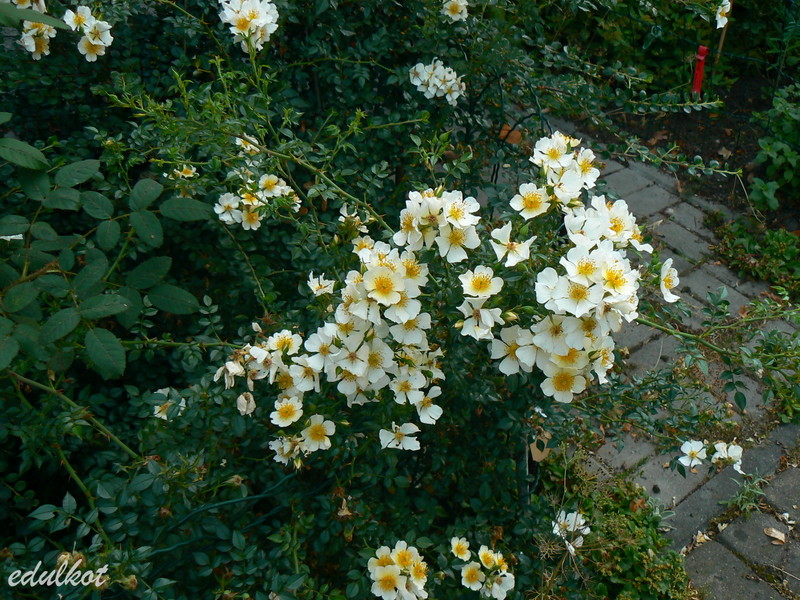 Skusiłam się na malutką, kompaktową różyczkę, kupując u Ćwików sugerowałam się jej wymiarami: wysokość 0,3 m, szerokość 0,4 m. Okazała się wielkim potworem, którego bardzo kolczaste pędy upinałam na płotku i na irdze. Teraz muszę ją wykopać i całkowicie nie mam pomysłu gdzie ją posadzić.