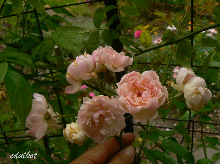 W niektóre lata kwitła obficie ale krótko, potem rosła i rosła, aż poplątała się z Souvenir du Dr. Jamain i obie do końca sezonu cierpiały na mączniaka prawdziwego.
