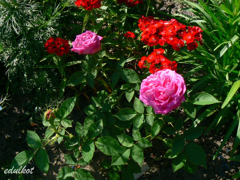Kwiaty: bardzo duże, półpełne (16-25 płatków), karminowo-różowe, powtarza kwitnienie;