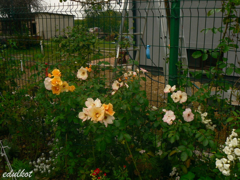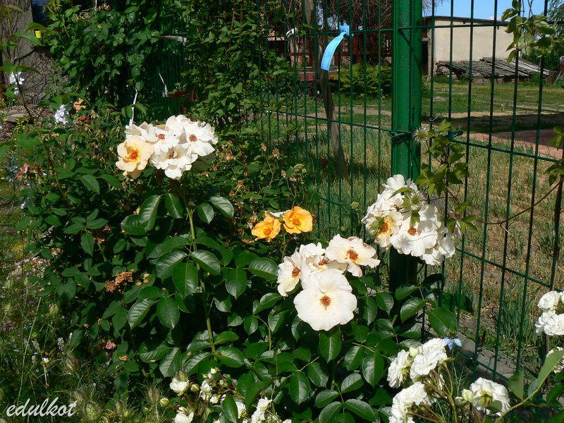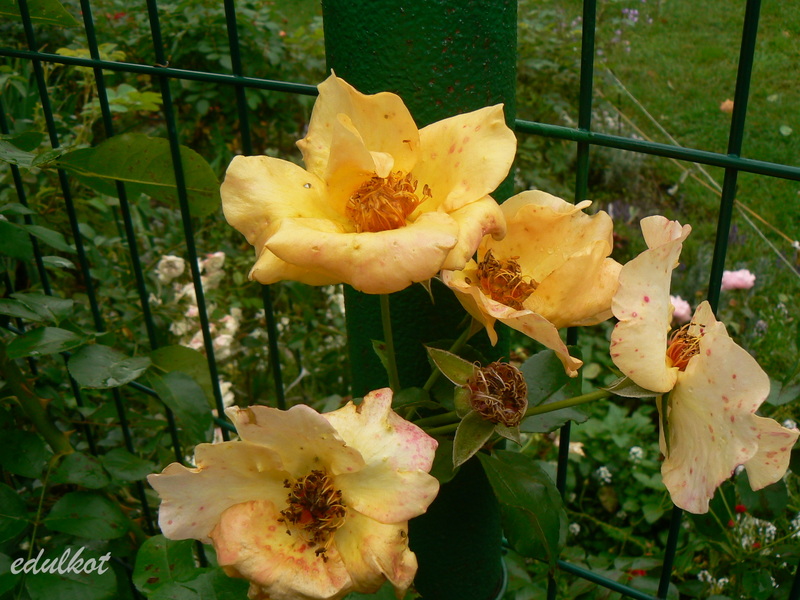 Powolutku się rozkrzewia, kwiatki ma śliczne z żółtymi pręcikami przechodzącymi w czerwony kolor. Wygląda na to, że jest odporna na choroby grzybowe bo do końca sezonu miała ładne liście, choć wyczytałam, że na czarną plamistość podatna. Słaba wytrzymałość na zmienne temperatury zimą i na przedwiośniu, w 2017 cięta do ziemi, ale do końca sezonu urosła do przeszło 2 m.
