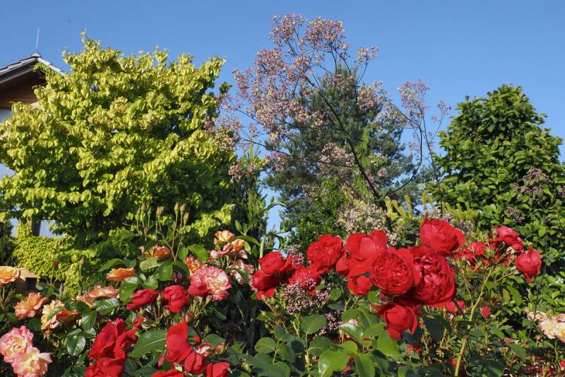 Wielkość: dorasta do 250 cm wysokości i 100 cm szerokości, zalecany odstęp między krzewami 80 -100 cm, pełna wigoru ładnie się krzewi