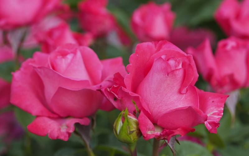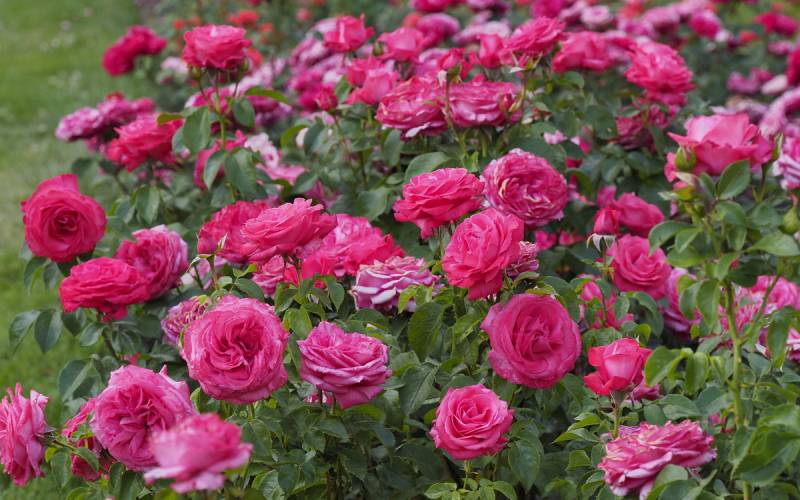 Kwiaty: pąki mocno wypełnione, po otwarciu elegancko uformowane, o romantycznie karbowanych płatkach w kolorze różowo-amarantowym (Ø: 8-10 cm);