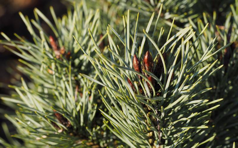 Pinus sylvestris 'Trollguld' z wiosennymi przyrostami.