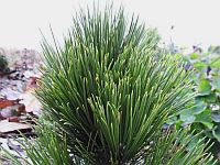 Igły zebrane w pęczki po 2, ciemnozielone, mocne i kłujące, długości 4,5–10 cm, grubości 1,5–2 mm.