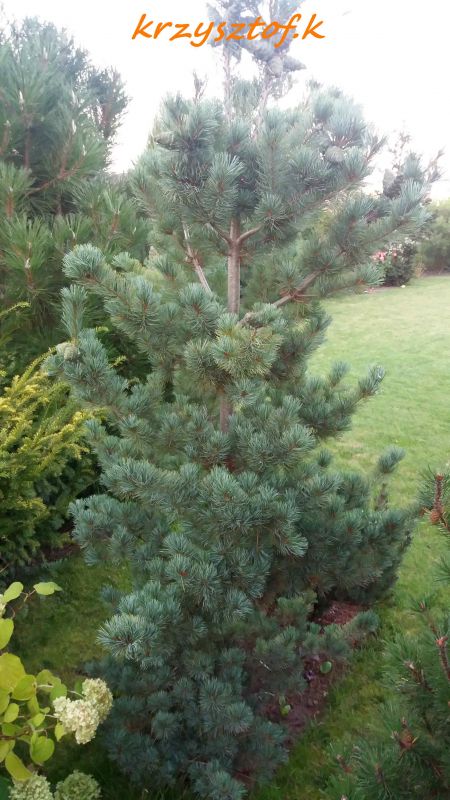 Jedna z ciekawszych karłowych odmian sosny drobnokwiatowej. Bardzo trudno dostępna w handlu, choć znana dosyć dawno, bo pierwsze wzmianki o niej datuje się na rok 1976. Rośnie w kształt stożka osiągając po 10 latach wymiary: 80x50 cm. Igły niebiesko-zielone. Im więcej będzie miał dostępu na słońca, tym intensywniejszy będzie ten pierwszy kolor.