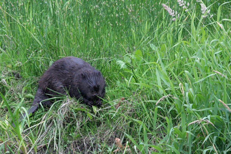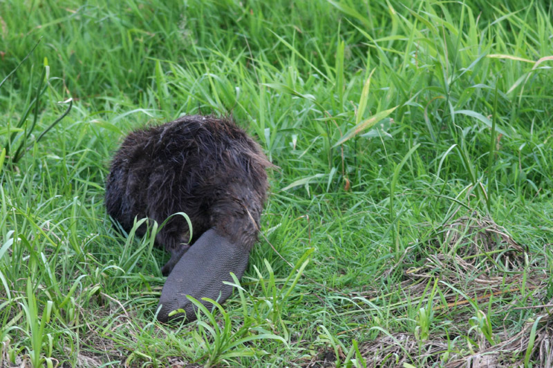 Wielu z nas widziało bobrze żeremia, ale żeby zobaczyć samego bobra, to już trzeba mieć szczęście. My mieliśmy, bo nie dość, że krążyły wieczorem w rzeczce 2 sztuki, to jeszcze jeden z nich wyszedł na brzeg, pasł się i szudrał. Myślałam na początku, ze coś go swędziało, ale doczytałam, że one czyszczą dokładnie futro po czym rozprowadzają po ciele wydzielinę z gruczołów przyodbytowych żeby nabrać wodoodporności.