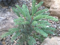 Zgodnie z nazwą przyjmuje kształt kropli i ma jasnoniebieskie igły. Budowa bardzo gęsta. Przyrost roczny: 2-3 cm Stanowisko: słońce