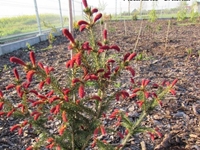 Drzewo jednopienne, kwitnie wiosną. Kwiaty żeńskie czerwonofioletowe, szyszeczkowate, długości 2 cm, wyrastają pionowo na końcach pędów. Kwiaty męskie to podłużne kotki, żółte, długości 1–1,5 cm, zwisają blisko końca pędu.