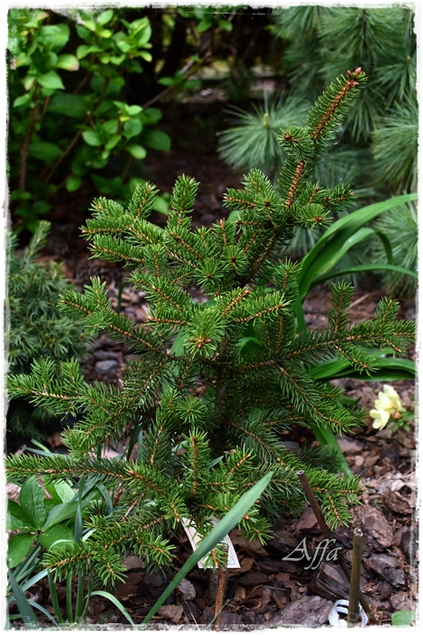 Pochodzi z Japonii. Najbardziej kłujący ze wszystkich świerków jaki można spotkać w Polsce - niesamowicie ostre i sztywne. Rośnie powoli; korona regularnie stożkowata. W ojczyźnie dorasta do 40 m wysokości. W naszym klimacie po 10 latach osiąga 1 m, a najstarsze egzemplarze mają około 10 m wysokości. Świerk mało wymagający, odporny na suszę, ale wrażliwy na nadmiar wilgoci w glebie. Polecany do nasadzeń w cieplejszych rejonach Polski