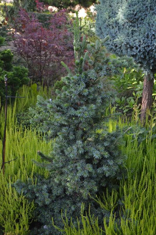 Początkowo rośnie trochę nieregularnie, ale z czasem zagęszcza się tworząc kształtny stożek. Przyrost roczny: 6-8 cm. Wielkość po 10 latach: 70x40 cm