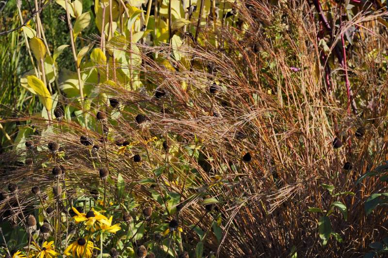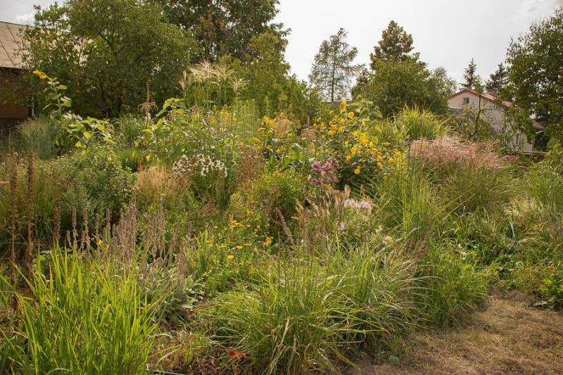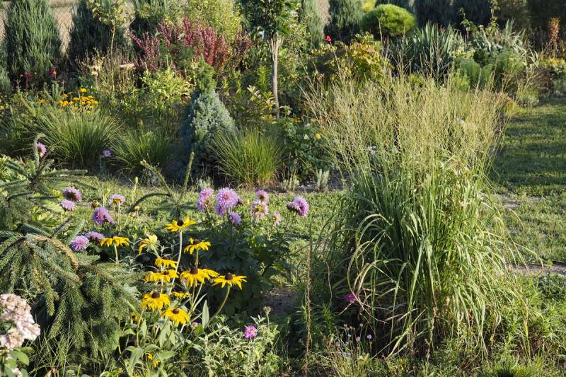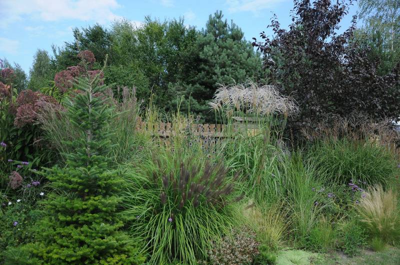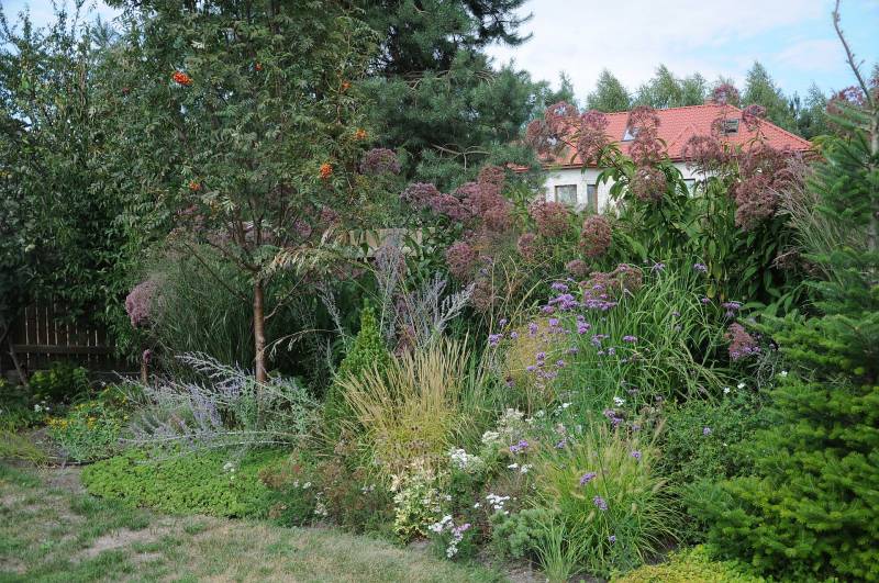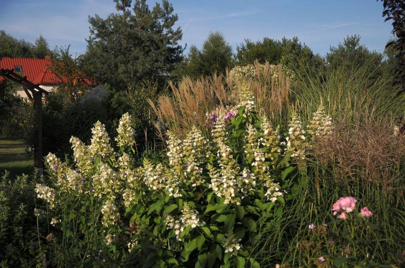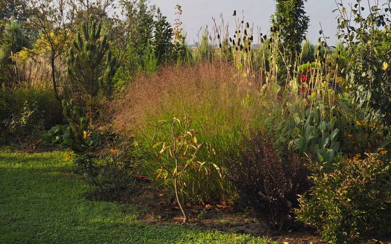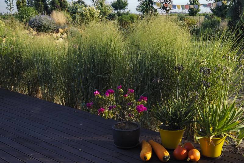 przy tarasie rośnie proso Nican, na przemian z miskantem Mysterious Maiden, ale ten ostatni nie zachwyca, bo straszna w tym miejscu susza
