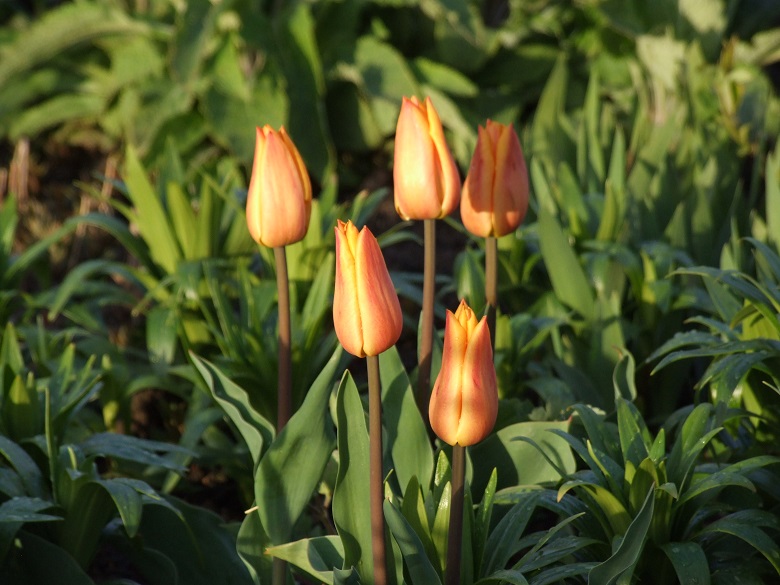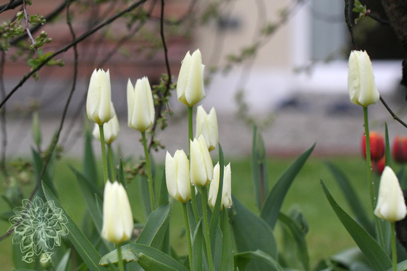 4 tulipany mieszańce Darwina - dorastają do 60 cm wysokości. Kwiaty owalne w kształcie, o lekko błyszczących jednobarwnych płatkach. Kwitną na przełomie kwietnia i maja. Prawdziwe hardcory, plenne i wytrzymałe!