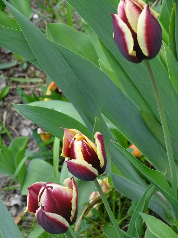 Moje tulipany 'Gavota' miały być tulipanami 'Muvota' (syn. 'Slawa'), bardzo podobnymi do 'Gavota', ale o miedzianym, a nie żółtym brzegu płatków (więcej o tym tulipanie tu: www.farmergracy.co.uk/products/tulip-slawa-bulbs-uk) - chciałam sobie zrobić kompozycję tulipanową podpatrzoną jesienią w "Gardener's World". Ale kompozycja jednak nie udała się jak powinna, bo u moich brzeg okazał się żółty :angry: , czyli to jednak jest 'Gavota'.