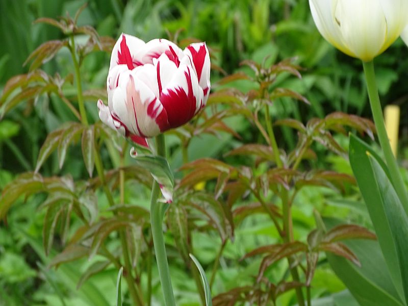 Wysokość: 50 cm Kwiat: biały z ciemno-czerwonymi paskami Kwitnienie: maj Wymagania: przeciętna ziemia ogrodowa z tendencją do lekko zasadowej, przepuszczalna Zapach: obecny Mrozoodporność: bardzo dobra na terenie całego kraju (4 strefa USDA)