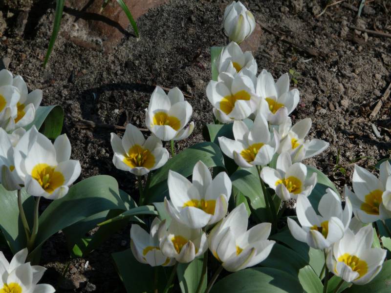 Tulipa polychroma na tapecie. Gatunek pochodzi z Iranu i Afganistanu, ale spokojnie - rośnie tam na takich wysokościach i w takich warunkach że spokojnie daje radę w naszym klimacie. Pierwszy raz został opisany w 1885 roku przez botanika Otto Stapfa. Kwitnie bardzo wcześnie, niemal zaraz po tulipanach turkiestańskich. Malutki, na maksa 15 cm wysokości w porywach, ale kiedy rozwinie kwiaty jest niezwykle widowiskowy (no tak, bezczelnie przyznaję że dokupiłam w tym roku cebulki tego gatunku). Tych kwiatów na pędzie ma zazwyczaj od trzech do pięciu, ponoć to go odróżnia od