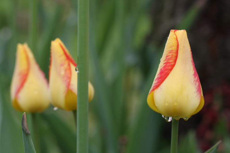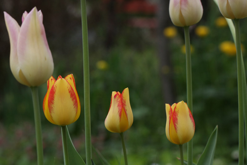 Wysokość: 60 cm Kwiat: żółty z czerwonym rozszerzającym się brzegiem Kwitnienie: połowa kwietnia–maj Wymagania: przeciętna ziemia ogrodowa z tendencją do lekko zasadowej, przepuszczalna Zapach: brak Mrozoodporność: bardzo dobra na terenie całego kraju (4 strefa USDA)