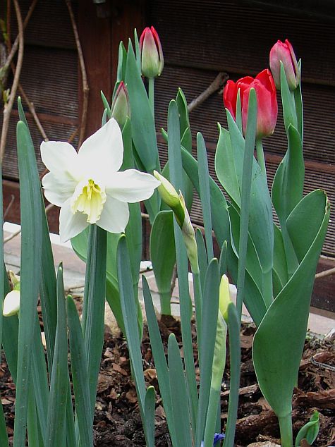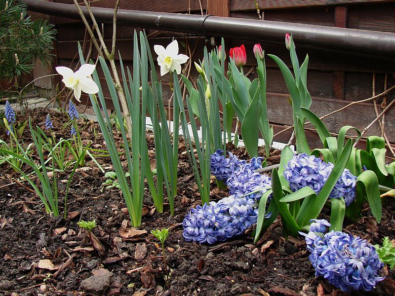 W kompozycji z narcyzami 'Thalia', hiacyntami 'Delft Blue' (się nie popisały 2smiech i leżą gwizdac ) oraz szafirkami armeńskimi
