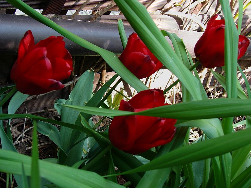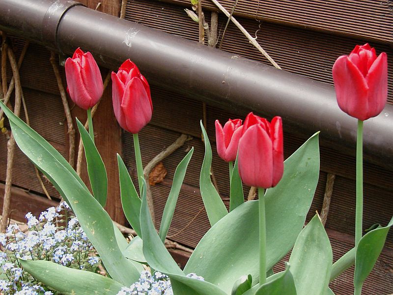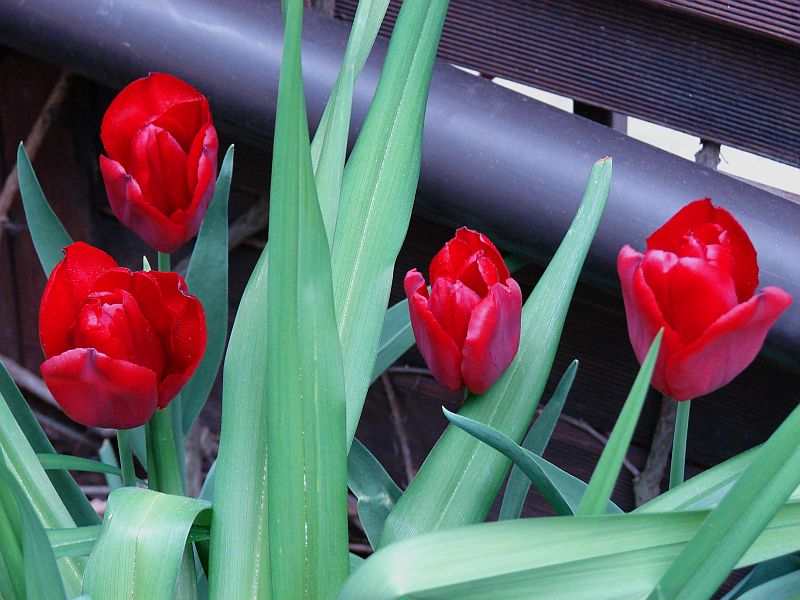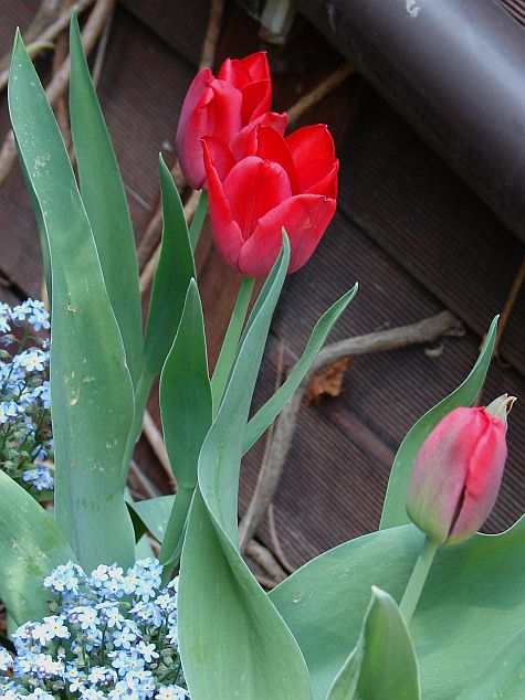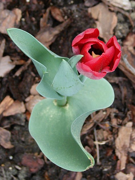 Tym razem tulipan Seadov z paczki zgadza się z opisem odmiany. Do cech dodam, że bardzo kruchy, kilka wylądowało w wazonie, po delikatnym dotknięciu wyłamuje się u nasady łodygi. Wart posadzenia, bo ciemna intensywna czerwień wyróżnia mocno się na tle jasnej wiosennej zieleni.