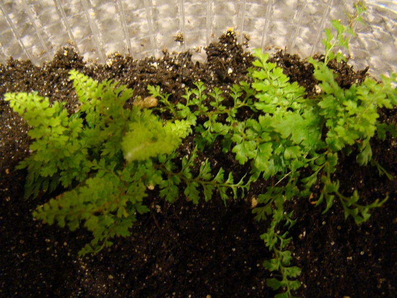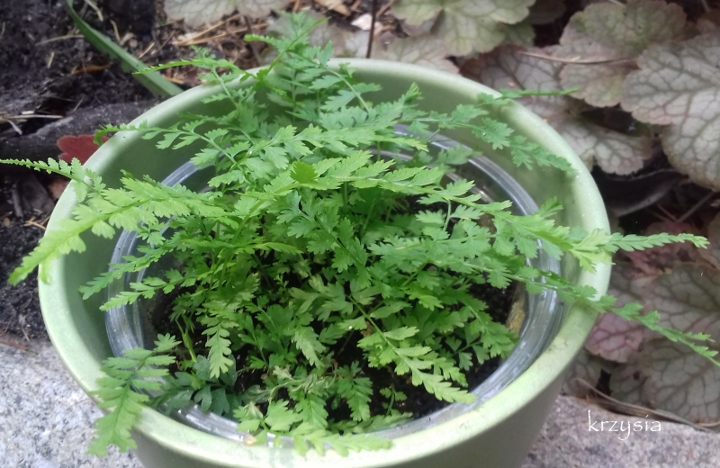 Krótkie przypomnienie, nasiona Athyrium filix-femina ‘'Dre's Dagger' dostałam od Siberki jesienią 2016 r, posiałam na początku lutego 2017, bardzo szybko zazieleniło się w pojemniku. Trzymałam to pod przykryciem kilka miesięcy, potem na chwilkę otwierałam, podlewałam przez podsiąkanie przegotowaną wodą. Na szczęście żaden grzyb nie zaatakował mojej 'hodowli'.