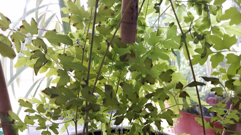 Chociaż u mnie Lygodium japonicum lubi mieć mokro w doniczce i nawet krótki niedobór wody powoduje szybkie podsychanie liści a nawet całych pędów.