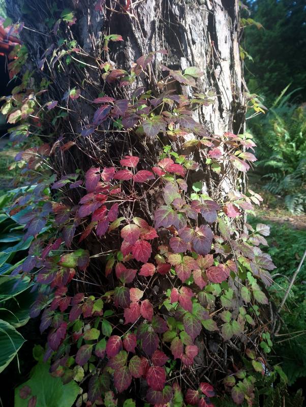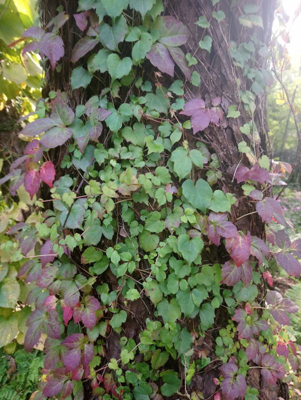 Bardzo ozdobna forma przypominająca bluszcza, ale z opadającymi na zimę liśćmi i pięknie przebarwiającymi się na czerwono.