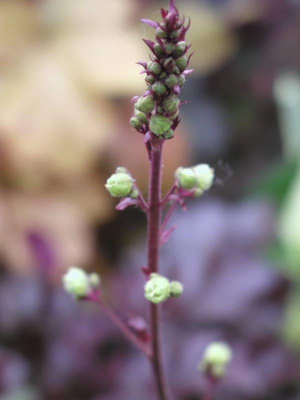 13. Czyżby Beauty Color (?) - jest to tegoroczna sadzonka, tu w cieniu, sadzonka "matka" rosnąca na słońcu ma pędy kwiatowe jasno zielone plus kwiatuszki drobne jasno zielone z wyciągniętymi pylnikami bało-czerwonymi