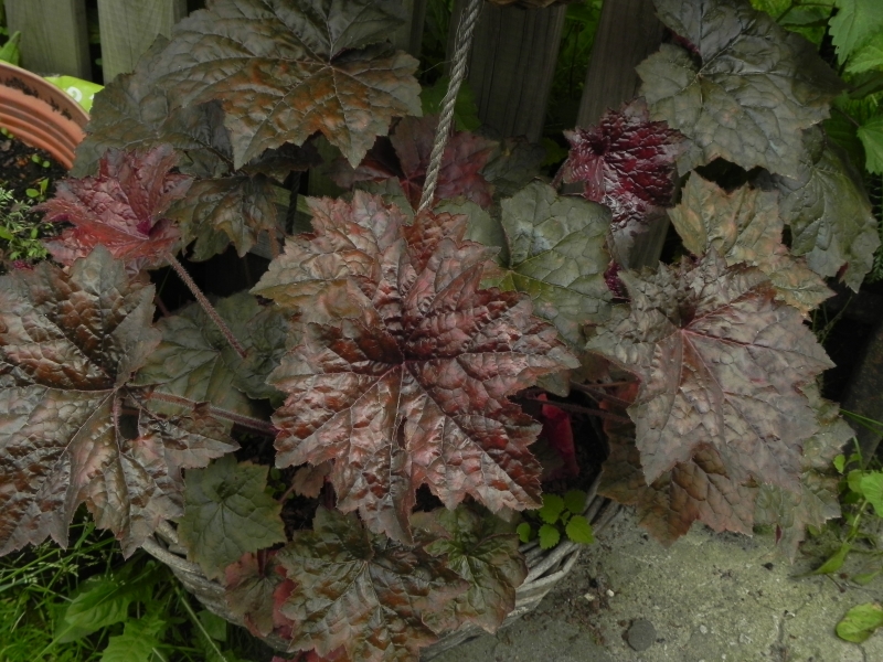 Gdzieś ostatnio wyczytałam, że te samosiewy to Palace Purple i tylko ona tak się sama sieje, nie sprawdzałam tej informacji jeszcze, ale fakt, że wszystko co mam we wszystkich możliwych doniczkach ma błyszczące jak PP liście, ale przeróżne ma kolory (choć kładę to na karb różnej wystawy).