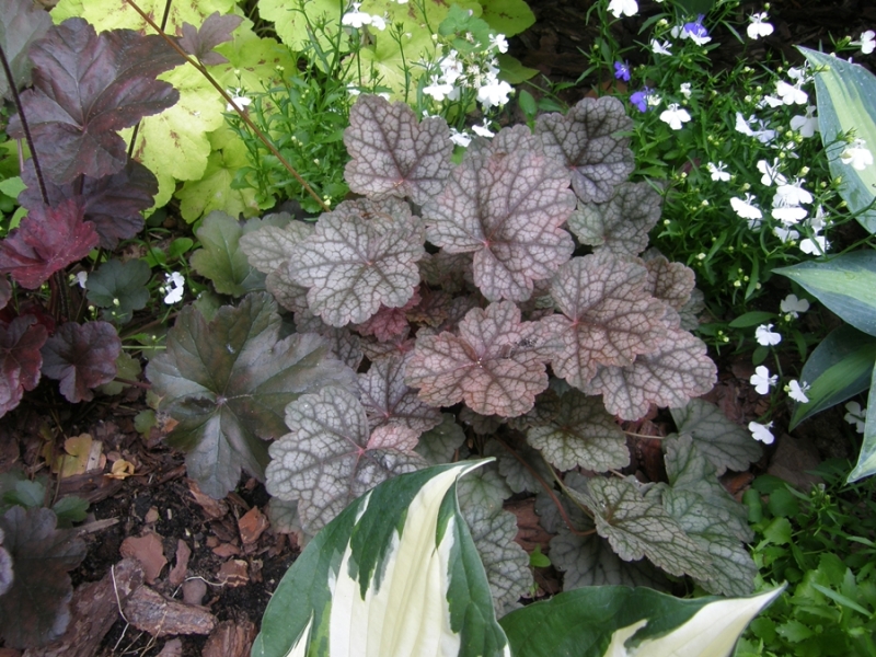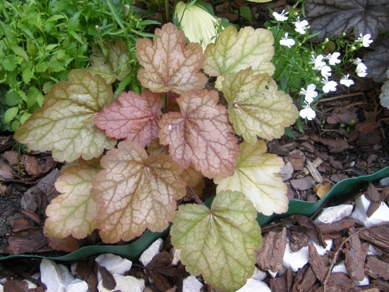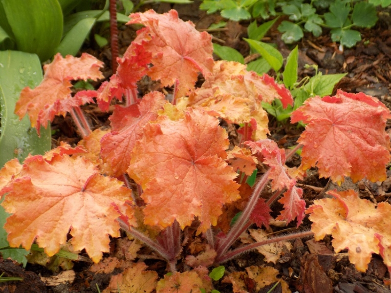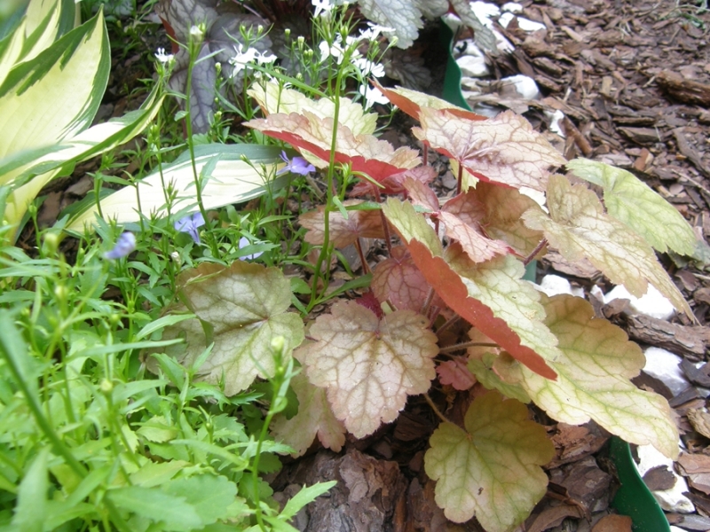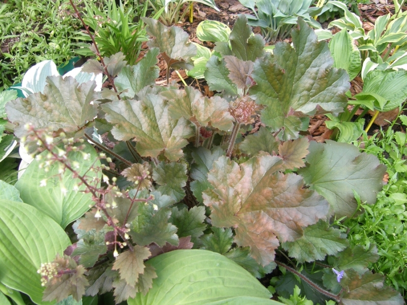 Na początek coś co mnie cieszy. Moja mutacja żurawki znowu mnie zaskoczyła. W tamtym roku wypuszczała liście w połowie brązowe w połowie zielone, a w w tym część ma zielonych, a część ciemnych.