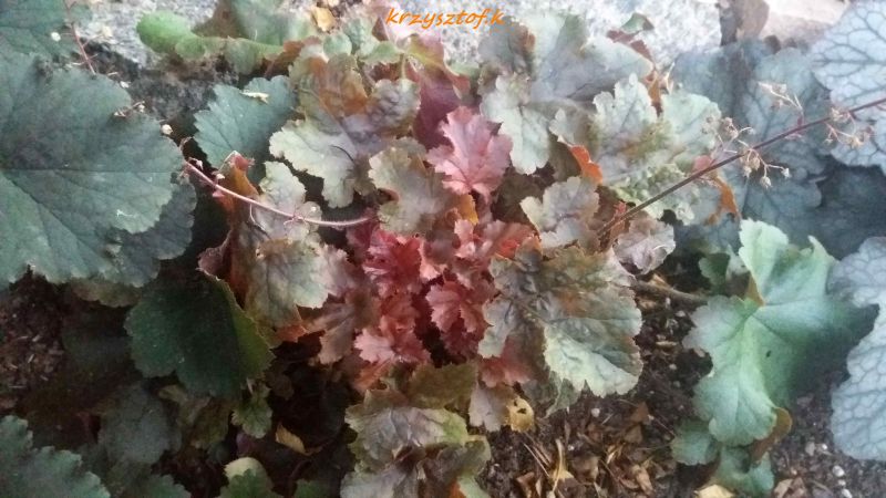 Rodzaj: Żurawka (Heuchera) Odmiana: Melting Fire Wymiary : odmiana tworząca kępy o szerokości 40 cm i wysokości 20 cm/50 cm z kwiatostanem. Kolorystyka: czerwono-bordowe liście. Kwiaty: białe. Kwitnienie: od maja do lipca. Warunki: stanowisko pół-cieniste/słoneczne .